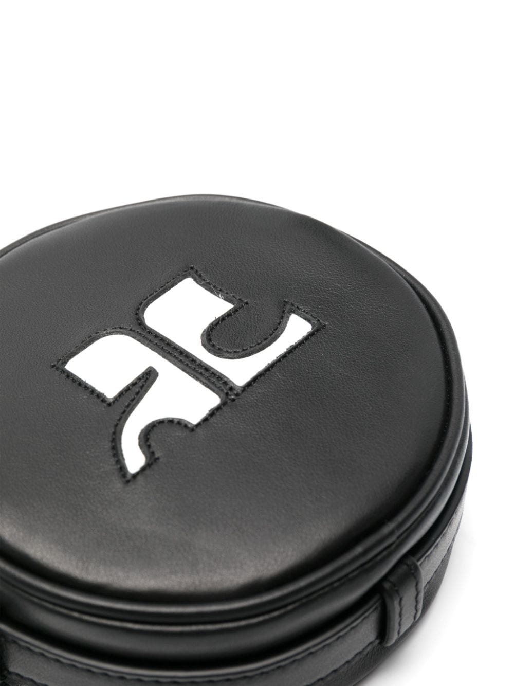 black leather smooth grain circular body adjustable shoulder strap appliqué logo to the front debossed logo to the rear main compartment internal logo patch full lining silver-tone hardware top zip fastening This piece comes complete with a protective dust bag. Leather circle bag Size and Fit - Width 4,37 in / 11,1 cm