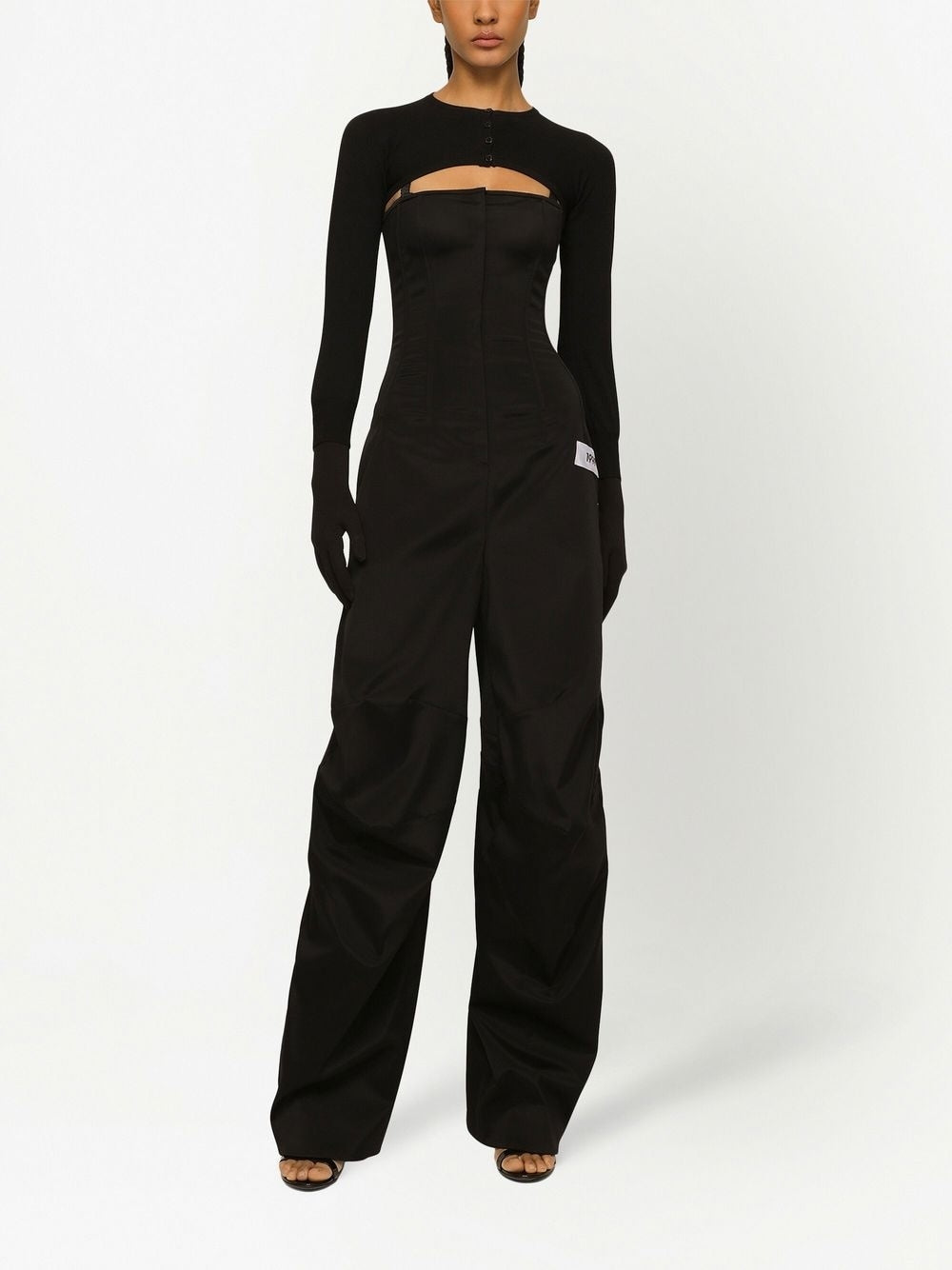 KIM DOLCE&GABBANA cropped button-fastening cardigan from DOLCE & GABBANA featuring black, stretch-design, round neck, button fastening and long sleeves. Cropped cardigan Size and Fit - This piece fits true to size. We recommend you get your regular size. Model is 1,75m / 5ft 8in wearing size 40 (IT)