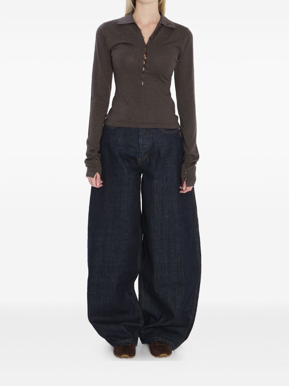 fully buttoned back Le Polo Merino Size and Fit - This piece fits true to size. We recommend you get your regular size. Model is 1,75m / 5ft 8in wearing size 36 (FR)
