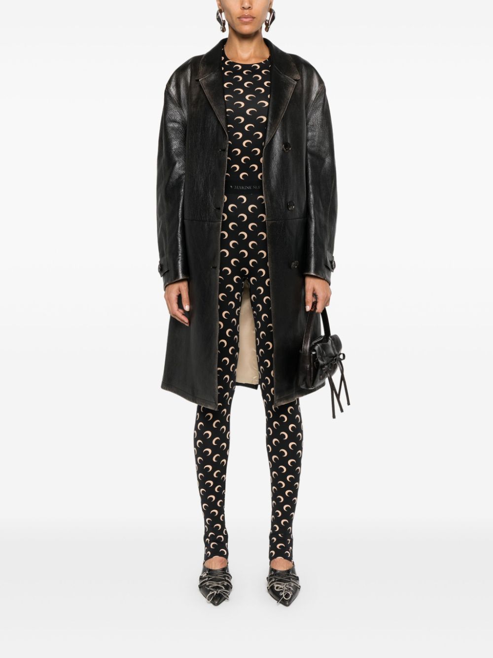 black/beige recycled polyamide blend stretch-design signature Moonogram pattern crew neck long sleeves straight hem Moon longsleeves top