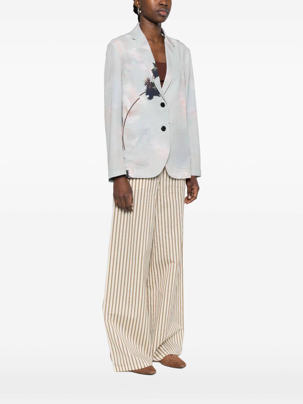 blue floral print patch pockets button fastening Printed single-breasted blazer jacket