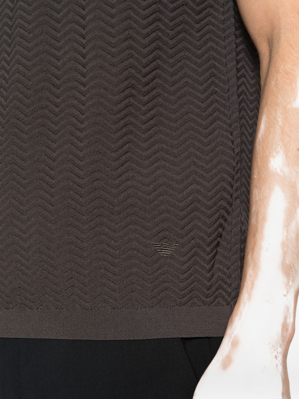 dark grey chevron pattern short sleeves round neck logo detail Knitted t-shirt