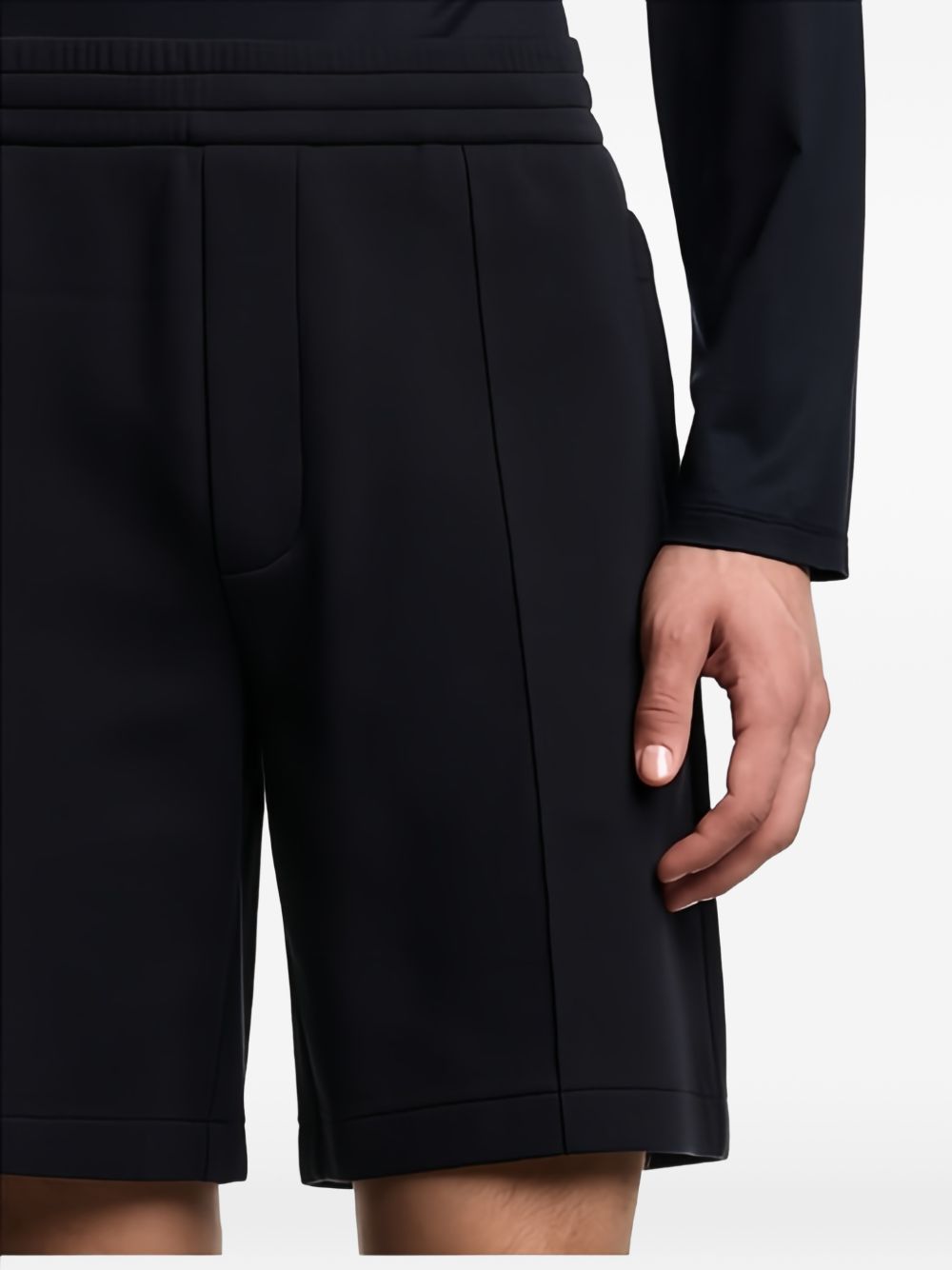 dark blue seam detail side slip pockets elasticated waistband Cotton shorts