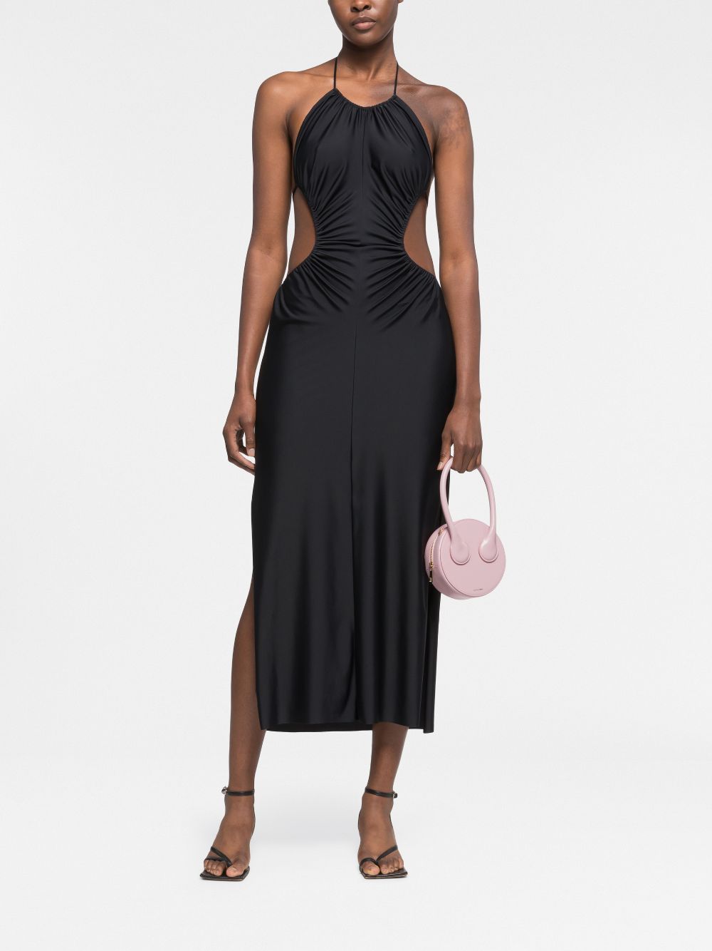 x Ester Manas Round Cake tote bag from AZ FACTORY featuring light pink, calf leather, logo stamp to the front, smooth grain, circular body, single circular top handle, top zip fastening, main compartment and detachable shoulder strap. Round leather mini bag Size and Fit - Width 5,91 in / 15 cm