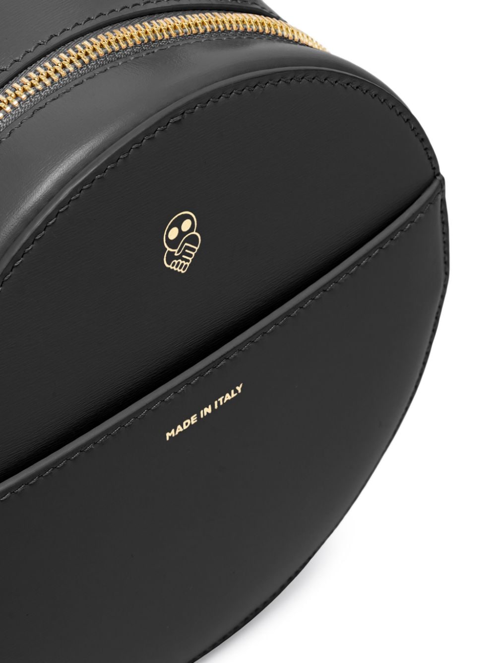 x Ester Manas Round Cake tote bag from AZ FACTORY featuring black, calf leather, logo stamp to the front, smooth grain, circular body, single circular top handle, top zip fastening, main compartment and detachable shoulder strap. Round leather mini bag Size and Fit - Width 5,91 in / 15 cm Height 5,91 in / 15 cm Depth 1,97 in / 5 cm Handle 4,33 in / 11 cm Strap 24,41 in / 62 cm
