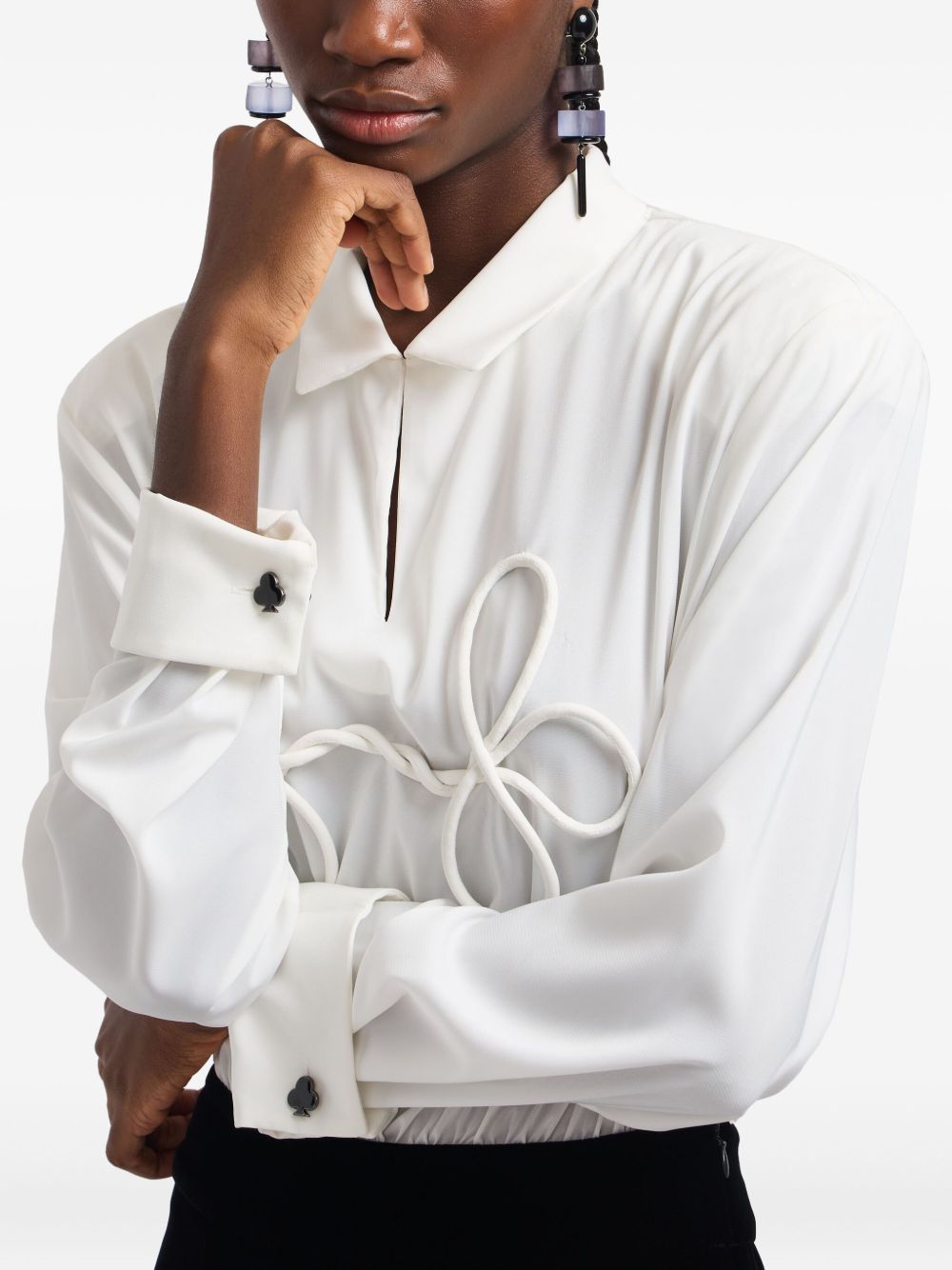 off-white velvet skirt wrap-around skirt rope detail long sleeves classic collar Bicolor long dress