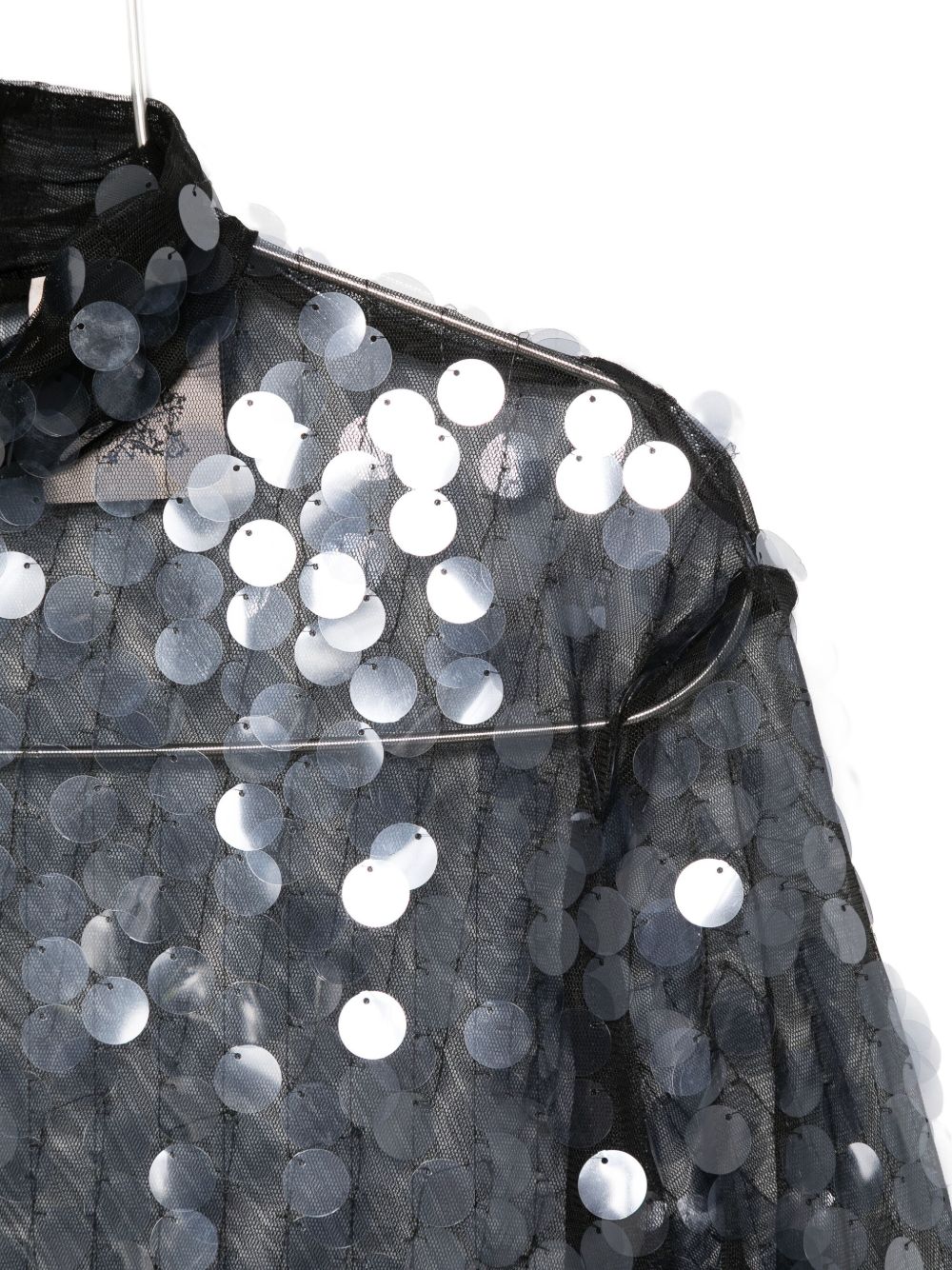 black/grey sequin embellishment high neck long sleeves sheer finish Sequined blouse